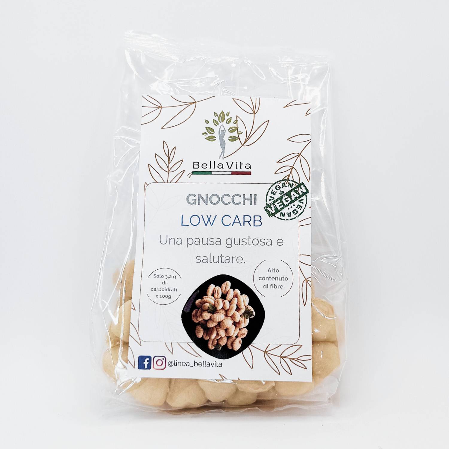 Mentre gli gnocchi tradizionali possono superare i 30 g di carboidrati e le 150 kcal per 100 g, gli gnocchi Linea Bella Vita contengono appena 3,8 g di carboidrati e 35 kcal per 100 g. Questo profilo nutrizionale li rende ideali per chi desidera mantenere basso l’apporto di zuccheri e calorie, perfetti per chi vuole gustare un piatto della tradizione in chiave più equilibrata e innovativa.